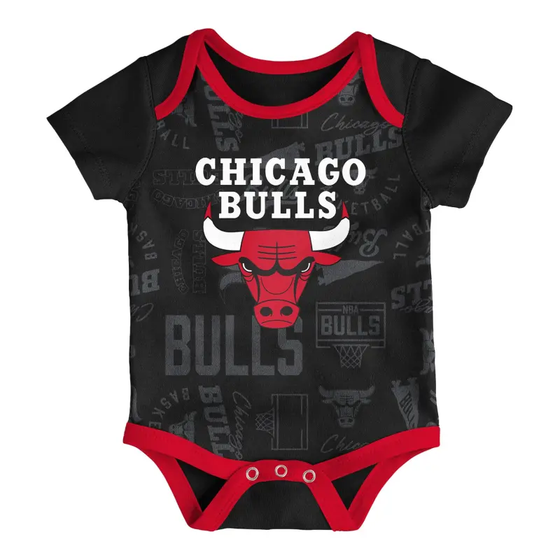 Start them young with this adorable 3-pack of Chicago Bulls infant onesies from Outerstuff. Made from 100% soft cotton, each bodysuit features a unique color and its own Bulls-inspired text design, bringing variety and team spirit to your little fan’s wardrobe. With lap shoulders and snap bottoms for easy changes, these onesies are as practical as they are playful—perfect for game day, nap time, or playtime.